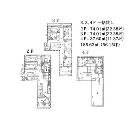 2・3F:各22.38坪 4F:11.37坪 専用階段有
