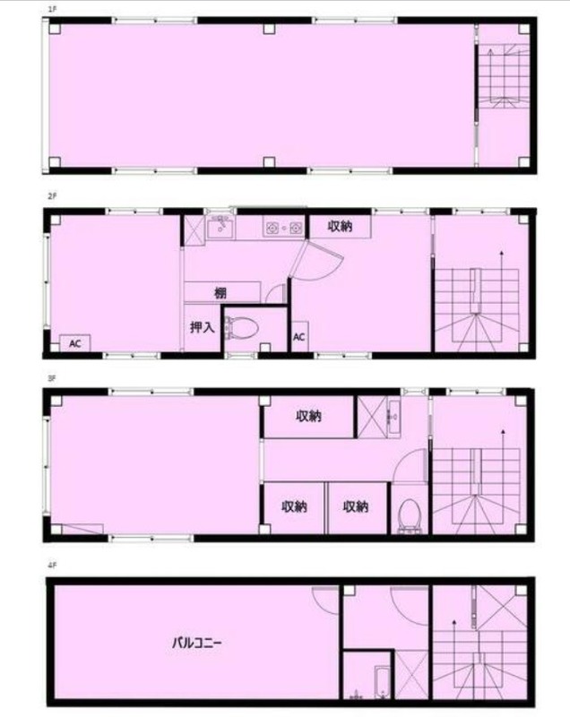 - 1F駐車場スペースあり、2F-4F住居仕様(現状渡し)