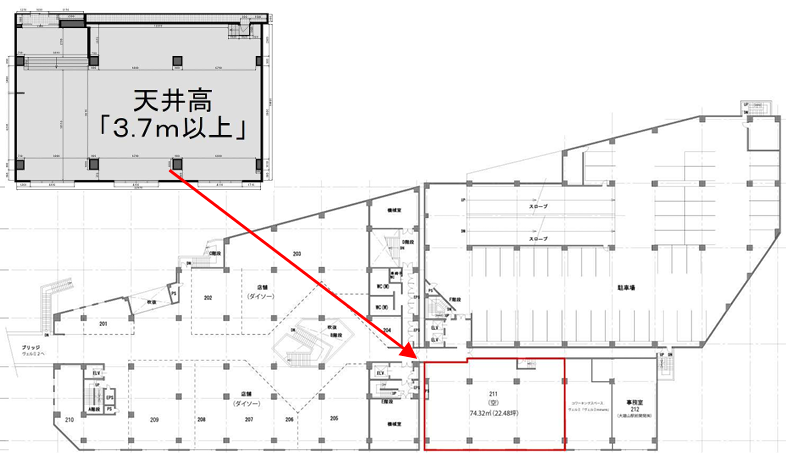 営業時間:9時~21時 天井高3.7m以上