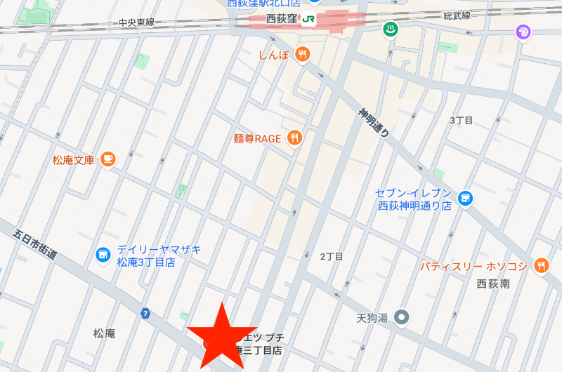 住所 東京都杉並区松庵三丁目1-1 建物名/所在階 西荻ユニティー/1階 最寄駅 JR中央線(快速)西荻窪駅