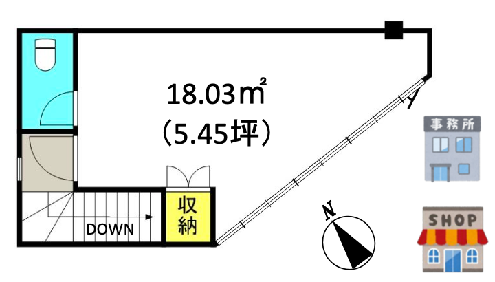 物件の現況 サービス(その他) 可能用途 指定あり 坪数 5.45坪