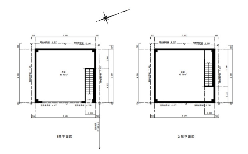 2階:45.78㎡/建物構造:鉄骨造地上2階建て予定