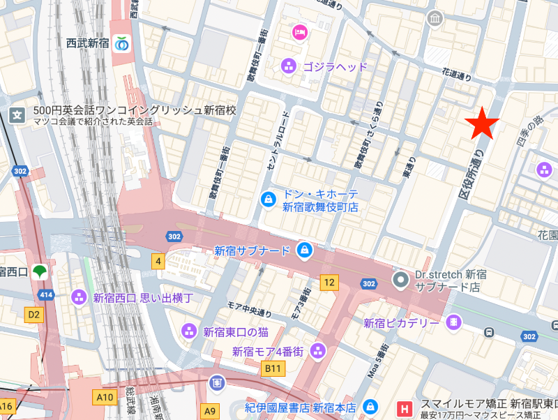 住所 東京都新宿区歌舞伎町一丁目3-1 建物名/所在階 第五金嶋ひとみビル/7階 最寄駅 東京メトロ丸ノ内線新宿三丁目駅