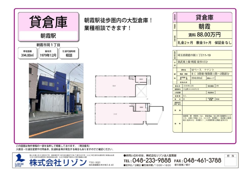 住所 埼玉県朝霞市岡一丁目11-19 建物名/所在階 Mベース テナント/1~2階 最寄駅 東武東上線朝霞駅