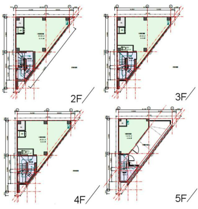 2F:9.85坪、3-4F:各9.83坪、5F:4.46坪