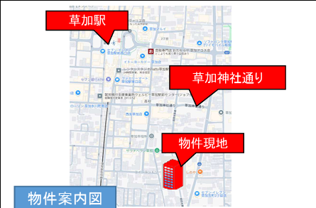 住所 埼玉県草加市高砂一丁目10-13 建物名/所在階 Evergarden(エバーガーデン)1階一括/1階 最寄駅 東武伊勢崎線草加駅