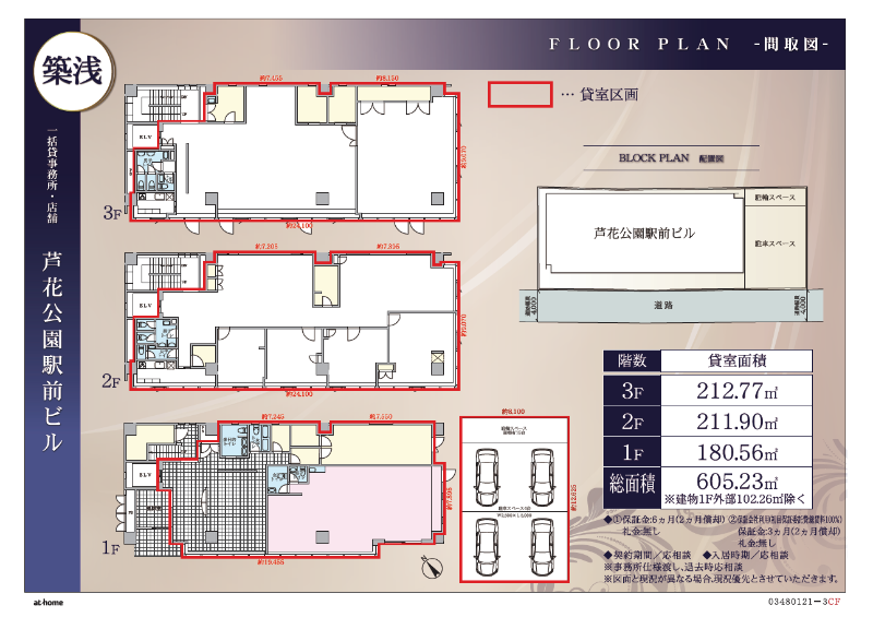 造作価格 ー 賃料(坪単価) 3,190,000円(17,423円) 管理費/共益費(坪単価) ー(ー) 保証金/敷金 6ヶ月 / ー 償却 2ヶ月 礼金 0ヶ月 更新料/再契約料 ー その他費用 備考欄記載 仲介手数料 1ヶ月 その他手数料 ー 契約期間 ー 契約種別