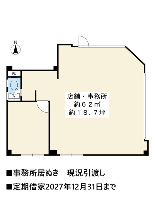 ■事務所居ぬき(定期借家2027年12月31日まで)現況引渡し■
