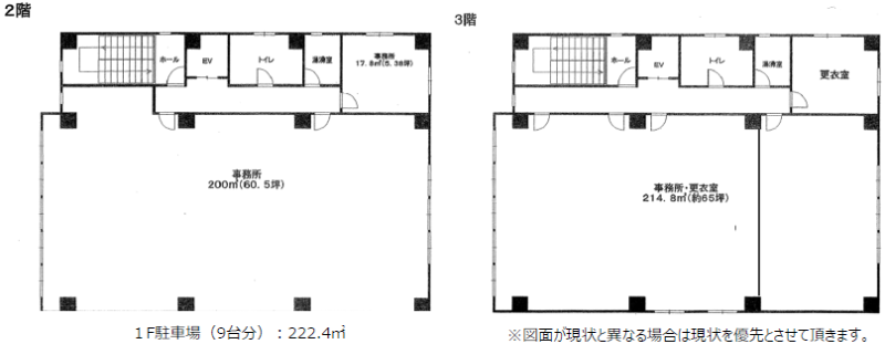 - 現況:1F/駐車場2-3F/事務所仕様 2年以内の解約不可