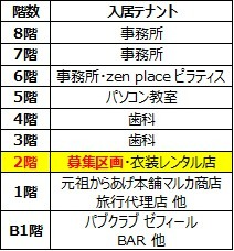 造作価格 ご相談 賃料(坪単価) 1,254,638円(15,400円) 管理費/共益費(坪単価) 313,660円(3,850円) 保証金/敷金 0ヶ月 / 6ヶ月 償却 10% 礼金 1ヶ月 更新料/再契約料 0ヶ月 その他費用 ー 仲介手数料 1ヶ月 その他手数料 ー 契約期間 3年 契約種別