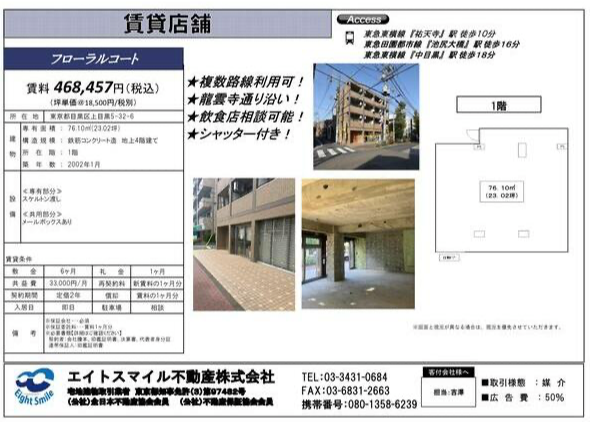 住所 東京都目黒区上目黒五丁目32-6 建物名/所在階 フローラルコート/1階 最寄駅 東急東横線祐天寺駅