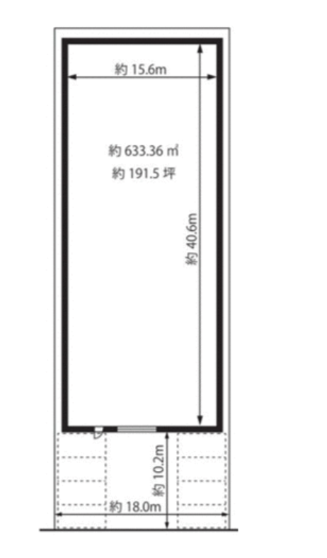 - 横約15.6m 縦40.6m 間口約18.0m
