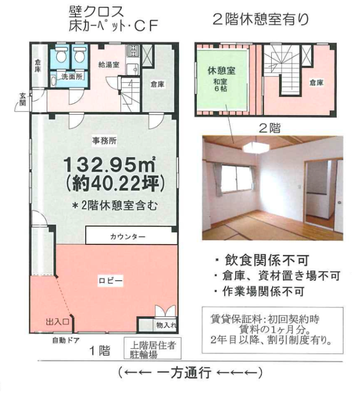 造作価格 ー 賃料(坪単価) 440,000円(10,940円) 管理費/共益費(坪単価) ー(ー) 保証金/敷金 ー / 3ヶ月 償却 ご相談 礼金 1ヶ月 更新料/再契約料 ー その他費用 ー 仲介手数料 1ヶ月 その他手数料 ー 契約期間 3年 契約種別