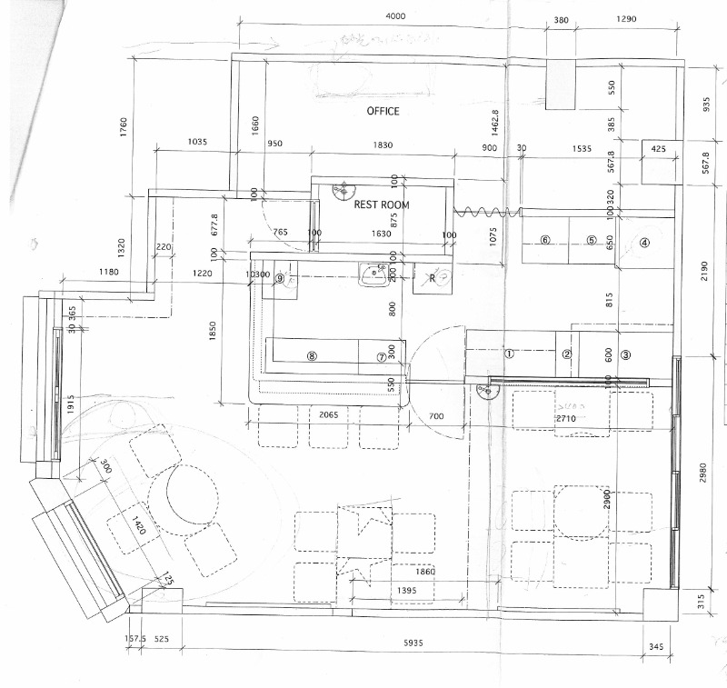- ガス:都市ガス6号グリストラップ:有ダクト:建物裏側へ直吹き