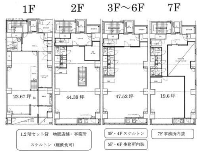 造作価格 ー 賃料(坪単価) 470,448円(9,900円) 管理費/共益費(坪単価) 104,544円(2,200円) 保証金/敷金 ー / 1ヶ月 償却 ご相談 礼金 2ヶ月 更新料/再契約料 0ヶ月 その他費用 ー 仲介手数料 1ヶ月 その他手数料 ー 契約期間 2年 契約種別