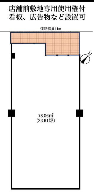 - 店舗前敷地専用使用権付 看板、広告物など設置可