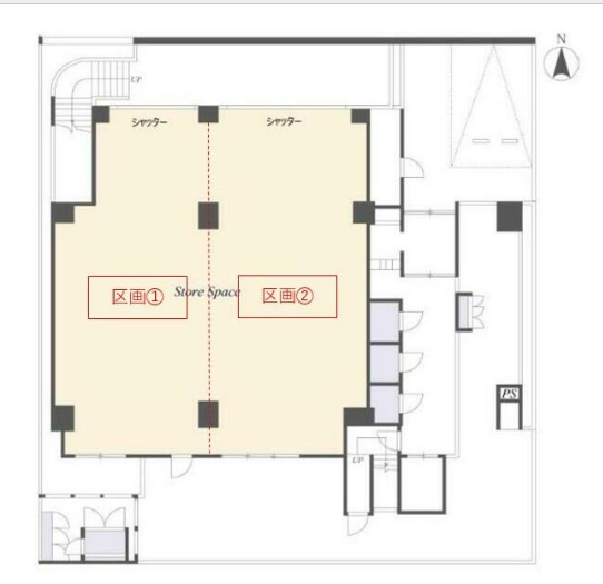 真ん中に壁を設置し2区画に分けた場合の1区画分の条件/1フロア貸可