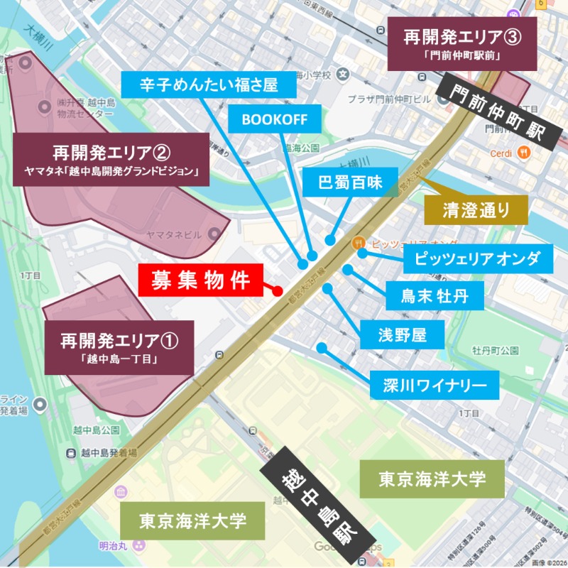 住所 東京都江東区越中島一丁目2-12 建物名/所在階 藤川ビル/1~2階 最寄駅 JR京葉線越中島駅