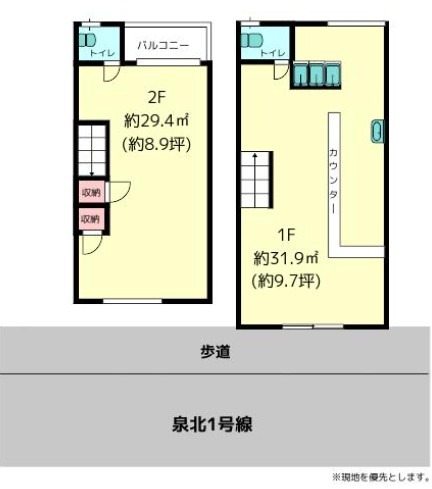 - 泉北1号線沿 2階建て飲食店跡テナント計18.5坪