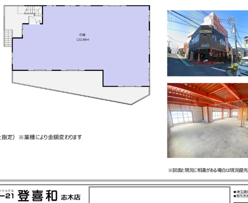 造作価格 ー 賃料(坪単価) 253,000円(6,816円) 管理費/共益費(坪単価) ー(ー) 保証金/敷金 ー / 3ヶ月 償却 ご相談 礼金 1ヶ月 更新料/再契約料 ー その他費用 ー 仲介手数料 1ヶ月 その他手数料 ー 契約期間 10年 契約種別 普通賃貸借