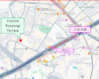 住所 東京都港区六本木七丁目17-23 建物名/所在階 FUSION Roppongi Terrace 1F/1階 最寄駅 東京メトロ日比谷線六本木駅