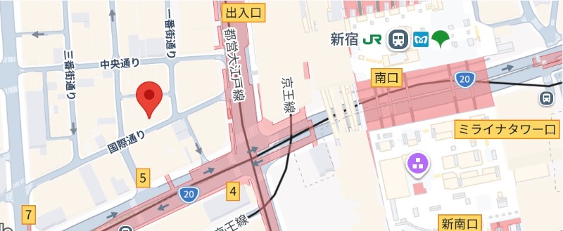 住所 東京都新宿区西新宿一丁目16-4 建物名/所在階 西新宿国際通りビル/4階 最寄駅 JR山手線新宿駅