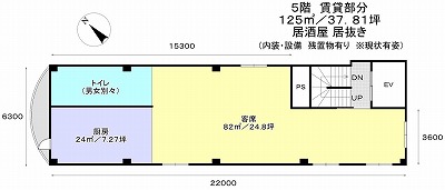 物件の現況 居酒屋 可能用途 バル・居酒屋・中華料理店・焼肉など 坪数 37.81坪